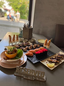 Для наших гостей мы готовим блюда японской, китайской и европейской кухни. Так же представлен большой выбор блюд для маленьких детей.