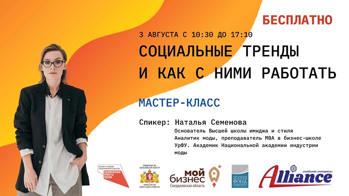 В рамках реализации комплексной услуги «Развитие социального предпринимательства» Свердловский областной фонд поддержки предпринимательства приглашает Вас принять участие в бесплатном мастер-классе, посвященном работе с социальными трендами, как с инструментом позиционирования и отстройки на потребительском рынке