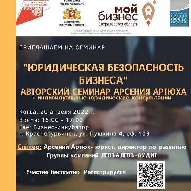 20 апреля Авторский семинар Арсения Артюха «Юридическая безопасность бизнеса»