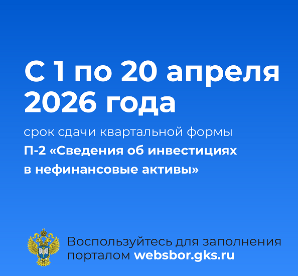 С 1 по 20 апреля 2026 года необходимо направить первичные статистические данные по квартальной форме федерального статистического наблюдения № П-2 «Сведения об инвестициях в нефинансовые активы».