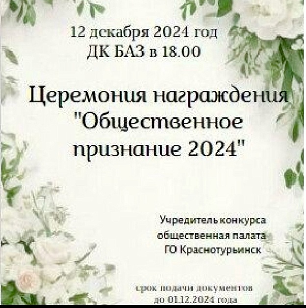 Приглашаем принять участие в городском конкурсе "Общественное признание 2024"